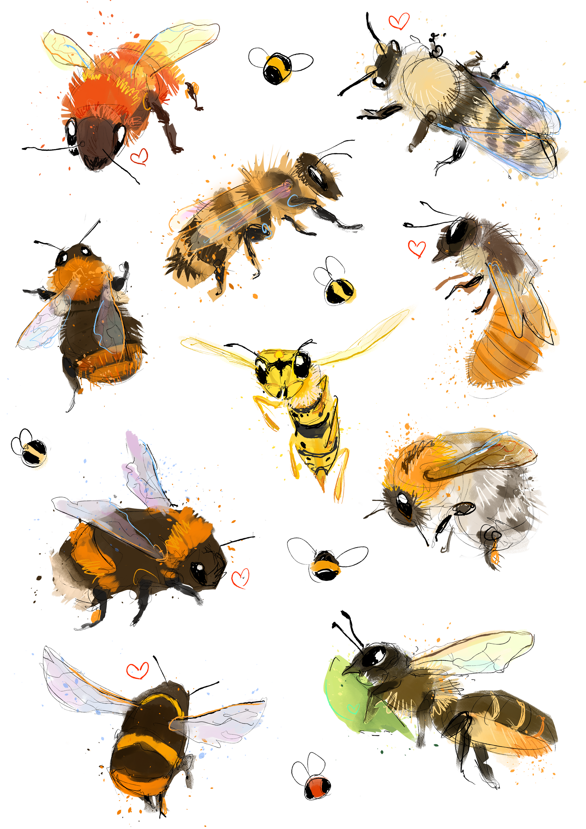 A6 sheet of stickers featuring bees and other Hymenoptera native to the UK!